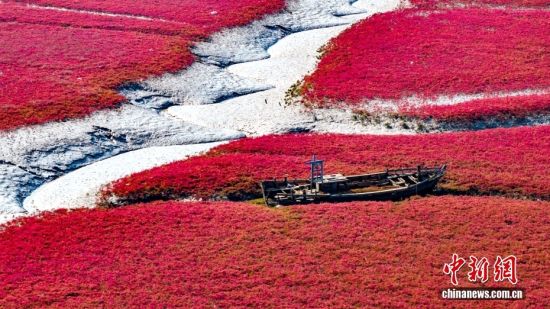 山东青岛:河海湿地披红装 深秋红海滩美如画