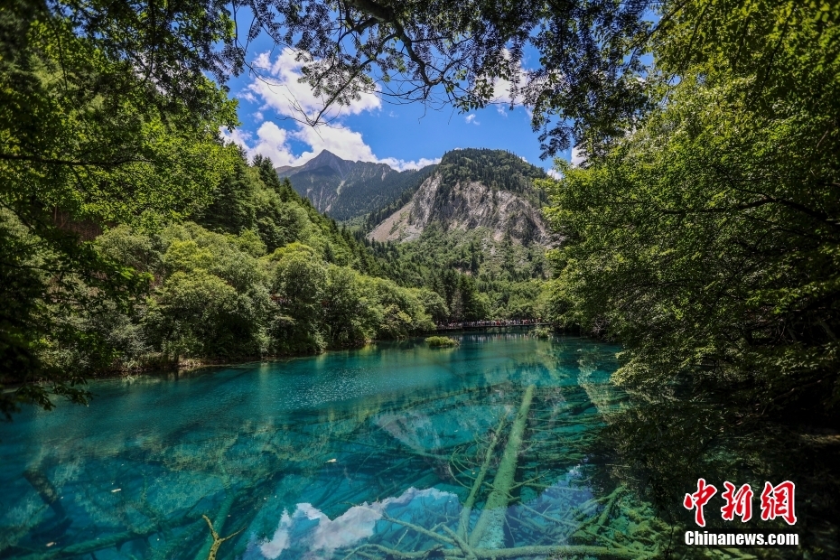 7月4日消息,近日,四川阿坝九寨沟风景区山风水韵,树木葱郁,宛如童话世界美不胜收。游人纷至沓来赏水避暑,尽享九寨沟的自然纯净。中新社发 韩加君 摄 图片来源:CNSphoto