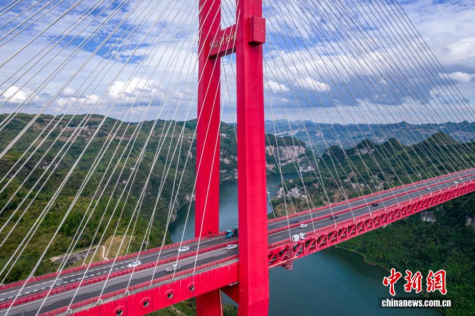 图为10月8日,车辆行驶在贵州省贵(阳)黔(西)高速公路鸭池河大桥上。(无人机照片)史开心 摄