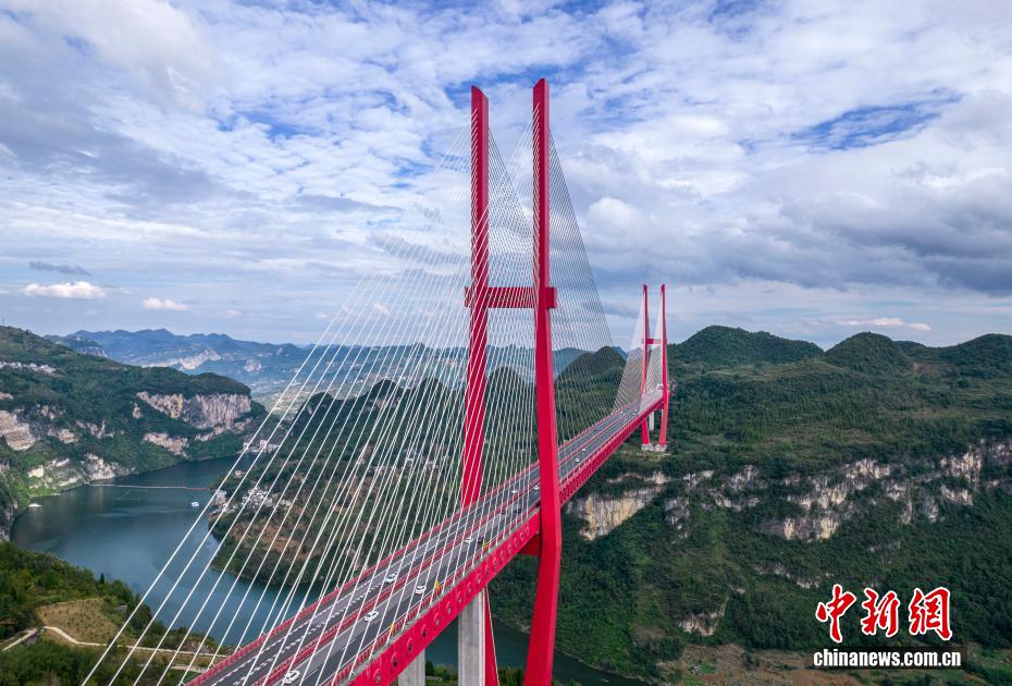 图为10月8日,车辆行驶在贵州省贵(阳)黔(西)高速公路鸭池河大桥上。(无人机照片)史开心 摄