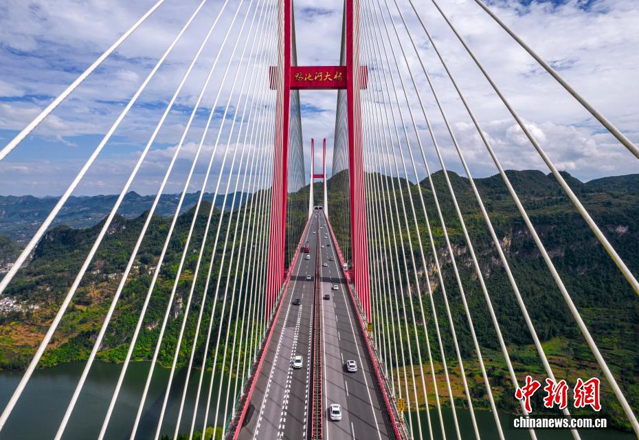 图为10月8日,车辆行驶在贵州省贵(阳)黔(西)高速公路鸭池河大桥上。(无人机照片)史开心 摄