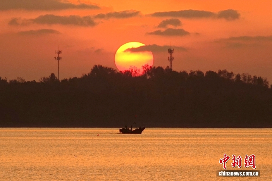 11月6日,山东青岛,日出时分,西海岸唐岛湾上空变幻的云霞与大海相映,油画般绚美。