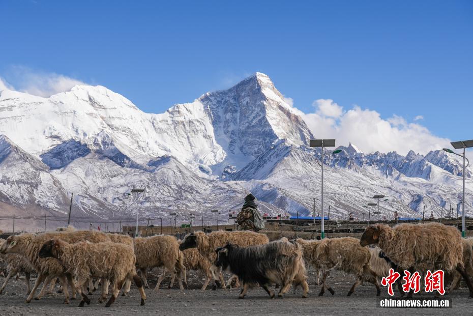 3月26日,西藏日喀则亚东县卓木拉日雪山银峰耸立,山脚下藏式村落错落,经幡随风舒展。牧民赶着牛羊归牧,与皑皑雪峰、高原草场相映,构成宁静壮美的春日图景。卓木拉日雪山位于亚东县帕里镇,又名“神女峰”。图为卓木拉日雪山脚下,牧民赶羊归来。贡确 摄