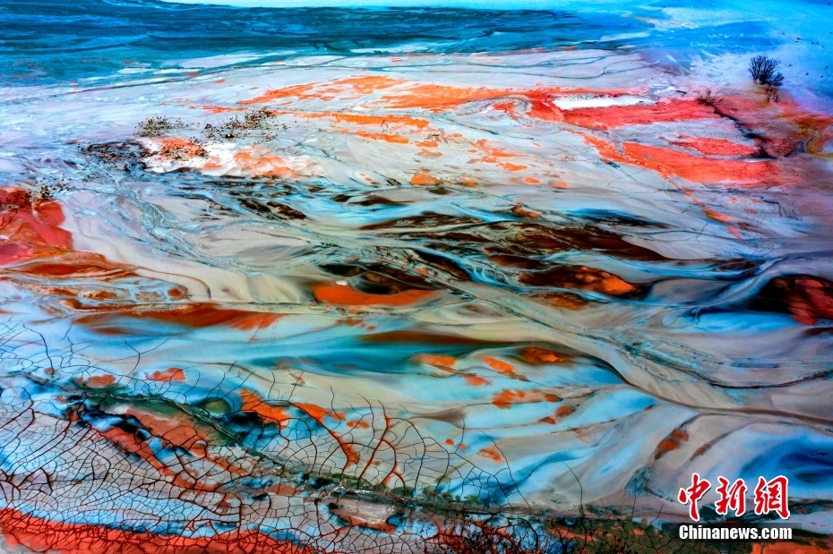 湖北黄石铜矿尾沙库内色彩丰富。