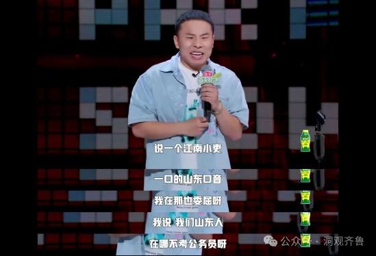 山东人还自带地域印象,从考公考研到酒桌文化、宗族观念……当这些山东日常被搬上舞台,秒变全网共情的名场面。山东人讲脱口秀,一开口就赢了一半。徐志胜、何广智的“鲁西南风味”,孟川的“济普”都让人听了很上头。山东方言里的倒装句、儿化音也自带喜剧效果。