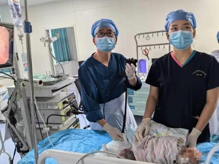 面对挑战,医院迅速组建了由新生儿科专家、小儿消化内镜专家、麻醉科专家及资深器械护士组成的多学科团队。术前,团队多次模拟演练,制定详尽检查方案及风险预案。