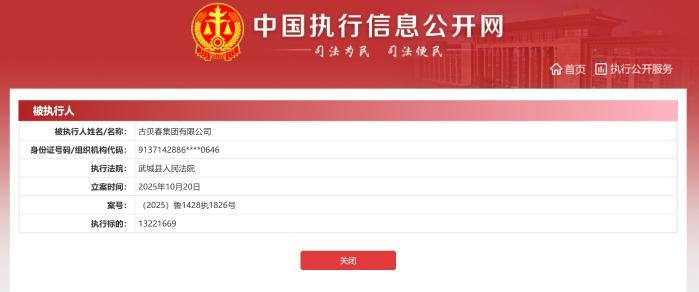 近日,中国执行信息公开网披露信息显示,山东知名白酒企业古贝春集团有限公司(下称“古贝春集团”)再添强制执行记录,执行金额1322.17万元,执行法院为武城县人民法院,案号为(2025)鲁1428执1826号。