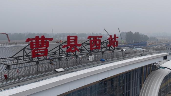 10月28日,随着“曹县西站”4个大字安装到位,雄商高铁曹县西站正式挂牌亮相。曹县西站位于曹城街道刘六庄村,是雄商高铁菏泽段两个新建车站之一。目前,站房主体结构已全部完成,正在进行室内装修、幕墙安装、广场和停车场施工作业。