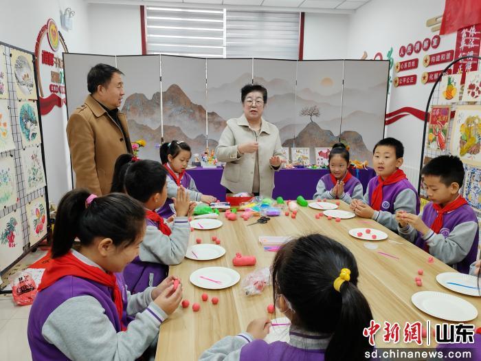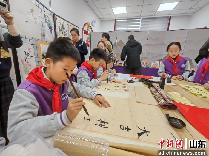 互动展示环节中,学校老师张志宽与社区书画志愿者同步展示才艺,一边是笔走龙蛇的书法创作,一边是色彩斑斓的绘画演示,为观众呈现了一场视听盛宴。随后,社区志愿者李秀娟带领学生成长共同体的队员们开展趣味泥塑制作,让队员们在动手实践中感受传统手工艺的魅力。