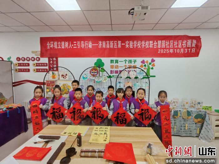 为积极响应济南市高新区全环境立德树人“三引导”行动号召,推动学校教育与社区教育深度融合,10月31日,济南高新区第一实验学校联合慧园社区成立社区书画院,并举办“翰墨飘香,丹青溢彩”社区书画展。