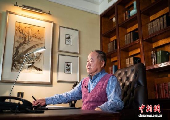 图为莫言在香港接受中新社记者专访。 中新社记者 侯宇 摄
