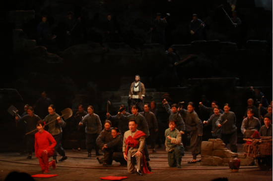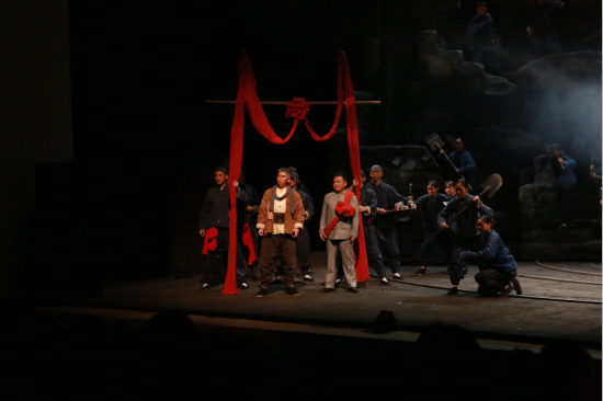 2024年底,恰逢该剧首演六周年,山东歌舞剧院秉持文化传承初心,正式授权学校演出并提供全方位艺术指导,为红色经典进校园、艺术人才共育搭建起坚实桥梁。排练期间,特邀山东省文化和旅游厅原副厅长、民族歌剧《沂蒙山》艺术总监张桂林教授,中国著名词作家、国家一级编剧、民族歌剧《沂蒙山》编剧王晓岭,著名作曲家、民族歌剧《沂蒙山》作曲、国防大学军事文化学院教授、博士生导师栾凯,国家一级演员、民族歌剧《沂蒙山》赵团长扮演者金郑建,中国音乐学院声歌系博士生导师王洪波教授等业内权威莅临学校指导。68名山师师生全身心投入创作,深入研读抗战历史、体悟沂蒙精神,将革命先辈的家国情怀融入唱腔设计、肢体表达等每一个表演细节,以对标政治性、思想性与艺术性统一的高水准追求,精心打磨舞台呈现。在此之前,山东师范大学音乐学院与山东歌舞剧院依托战略合作,在山东会堂联合演出民族歌剧《沂蒙山》专场;还作为2025第二届长江文化艺术季“灵动长江”舞台艺术精品展演剧目在武汉洪山礼堂隆重上演。