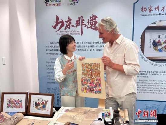 推介会现场,悉尼音乐学院艺术团和山东省直文艺院团联袂呈现《沂蒙山小调》《谁不说俺家乡好》《青山远黛》等民乐、歌舞表演。此外,五位来自山东的非物质文化遗产代表性传承人带来杨家埠木版年画、剪纸剪影、费县手绣、德州窑红绿彩、传统戏法等非物质文化遗产代表性项目现场展示,吸引澳大利亚嘉宾体验。(完)