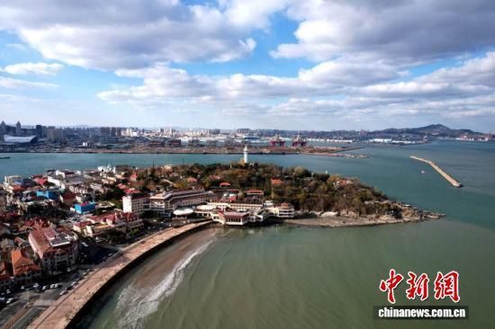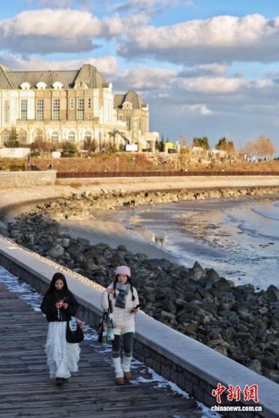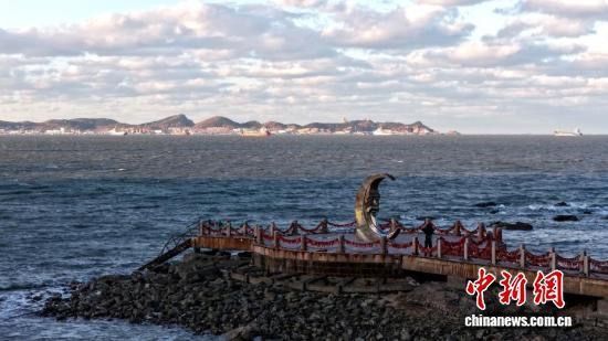 12月3日,山东烟台海滨薄雪轻覆,红瓦建筑与碧海相映,渔船、礁石、雕塑点缀其间,勾勒出一幅静谧和谐的北方海滨冬日画卷。(无人机照片)王鑫 摄