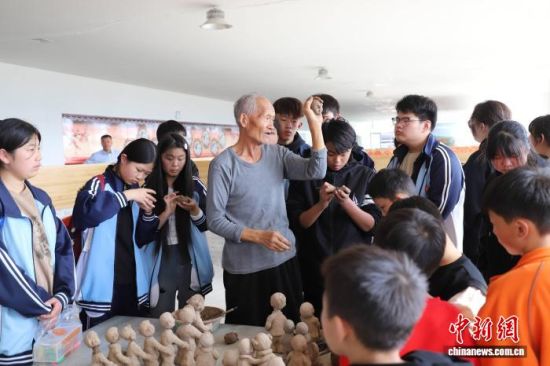 学生们在郓城县乐田园生态农场体验黄河泥塑。郓城县委宣传部供图