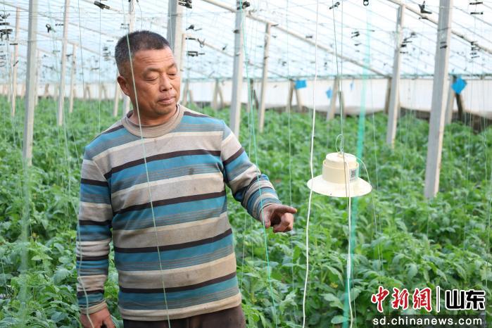 2024年12月,农行东营分行为其发放30万元农户贷款。2025年初,农行东营分行又为其免费安装了“大棚保”智能设备。这个小巧的设备可实时监测棚内温湿度,通过手机小程序同步数据,一旦出现异常便会以铃声报警提醒。一天深夜,设备突发预警显示棚内湿度骤升、温度下降,刘杰夫妇及时调整通风设备和温控系统,成功避免了蔬菜冻害。