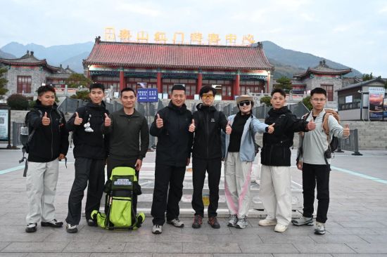 梁成和他的团队成员在泰山山脚下合影 周盛平 摄
