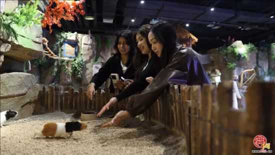 同样被生命活力打动的,是老挝姑娘林丽珠。在动物世界区域,一只憨态可掬的荷兰猪牢牢抓住了她的心。“它需要零食的时候,就吱吱地叫。”她描述时眼中闪着光,“我觉得是最可爱的。”简单而直接的互动,唤起了跨越物种的温柔共鸣,展现了园区在生态互动与情感联结上的巧思。