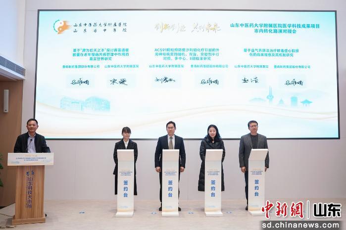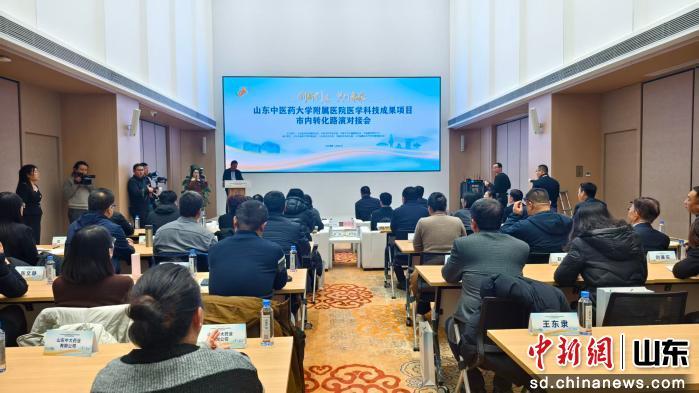 中新网山东新闻12月25日电(周艺伟 魏然)“创新创业·共创未来”山东中医药大学附属医院医学科技成果市内转化路演对接会24日在山东科技大市场顺利落幕。本次活动旨在进一步推动医院创新成果更快、更好地走向市场,破解临床研究成果的转化难题。济南市卫生健康委员会、济南国际医学中心等单位相关领导,以及山东省内外生物医药企业、投资机构代表等100余人齐聚现场,共话中医药科技成果转化新路径。