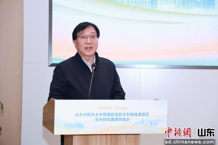 济南市科技局党组成员、副局长彭文博在致辞中表示,科技创新是引领发展的核心动力,科技成果转化则是打通“科研-临床-产业”闭环的关键纽带。山东中医药大学附属医院作为该省中医药领域的龙头标杆,在中医传承创新、中西医结合研究、特色制剂研发等方面积淀深厚、成果丰硕,其发展方向与济南市生物医药及大健康产业布局高度契合。济南市科技局将持续深耕“创新创业·共创未来”品牌建设,搭建常态化供需对接平台,推动“医产学研用”深度融合,助力更多中医药创新成果从“书架”走向“货架”,为健康山东建设注入持久动力。