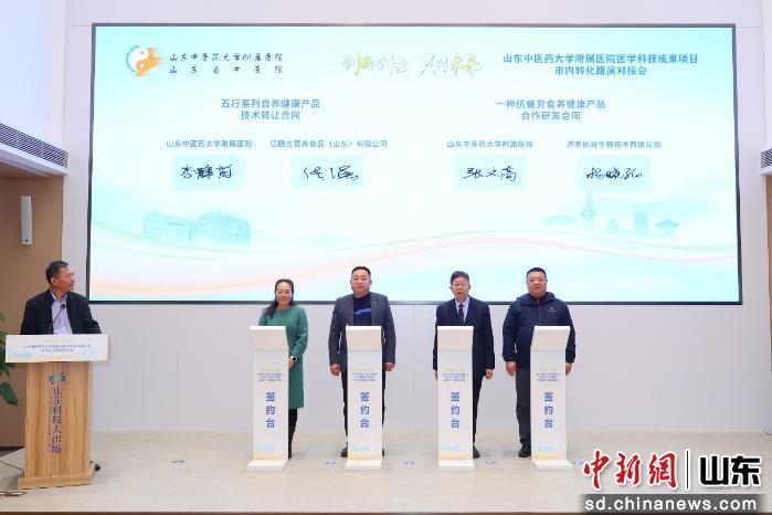 活动现场,山东中医药大学附属医院与山东省计算中心(国家超级计算济南中心)、山东麦德森发展集团有限公司等多家单位集中签约,合作内容涵盖战略合作、临床研究、健康产品开发及具体技术转化等多个核心领域,为成果转化筑牢合作根基。