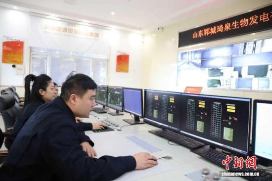 山东郓城琦泉生物发电有限公司生物发电控制室。郓城县委宣传部供图