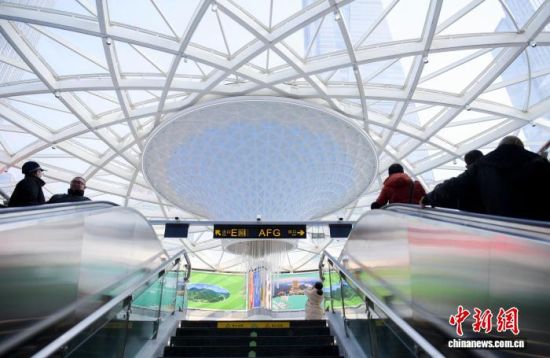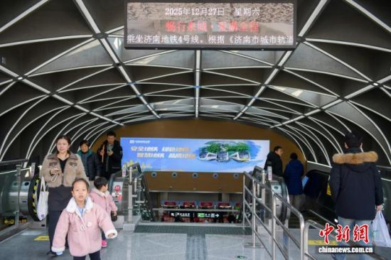 12月27日,市民在济南地铁中央商务区站内游览。中新社记者 张勇 摄