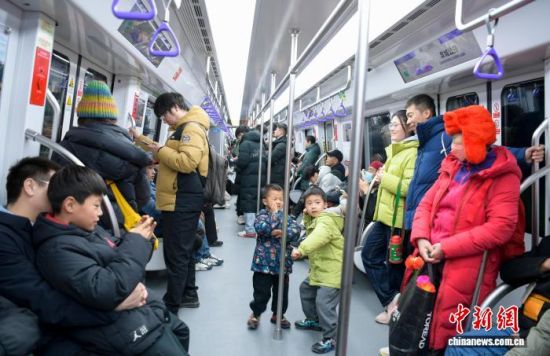 12月27日,市民乘坐济南地铁。中新社记者 张勇 摄
