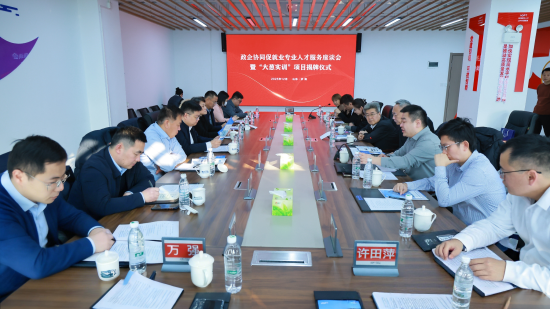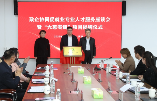 12月30日,政企协同促就业专业人才服务座谈会暨“大葱实训”项目揭牌仪式在济南举行。共青团山东省委员会副书记盛夏,山东省公共就业和人才服务中心副主任戚燕群,山东省互联网传媒集团党委书记、董事长贠瑞虎以及政府相关部门代表等20余名嘉宾参加活动。