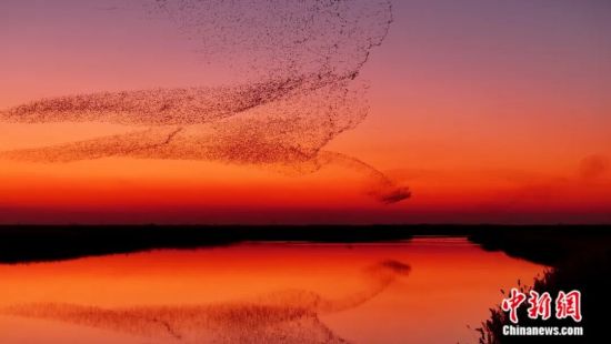 11月25日,山东东营黄河三角洲国家级自然保护区现“鸟浪”奇观。杨斌 摄