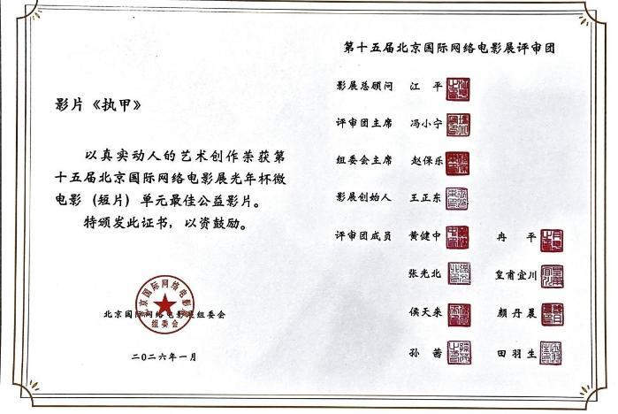 1月9日,第15届北京国际网络电影展隆重举行,山东大学附属儿童医院策划拍摄的《执甲》荣获第十五届北京国际网络微电影展微电影(短片)单元最佳公益影片,医院副院长郭磊及影片策划人员共同参加颁奖典礼。