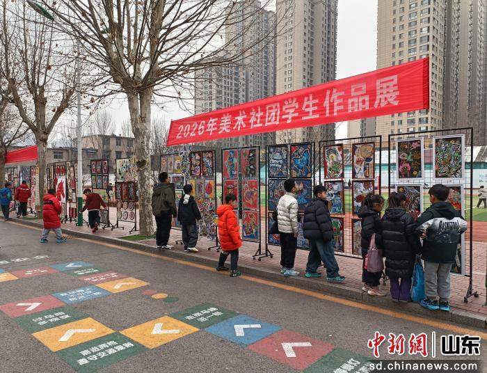 中新网山东新闻1月16日电(堵帅)为深入推进“五育融合”,彰显美育成果,1月14日至16日,滕州市实验小学荆河路校区举办“迎新年”美术社团作品展。活动以书画传情,生动展现了学子们眼中绚丽多彩的美好生活、滕州家园的蓬勃风貌与祖国山河的壮丽辉煌,极大地激发了学生的创作热情。