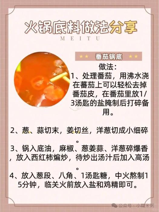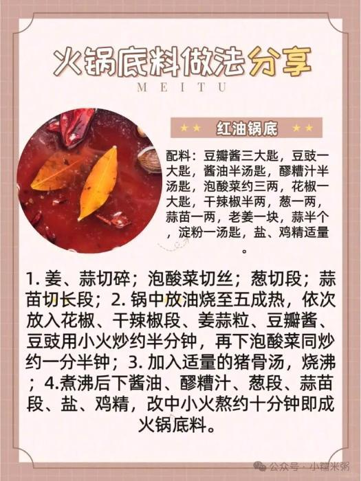 无论是麻辣鲜香的川渝风味,还是醇厚浓郁的北方口味,掌握了今天这六款基础底料的制作方法,你就能随心所欲地变换出无数种火锅体验。准备好了吗?从经典到创新,从清淡到重口,总有一款能点燃你的味蕾,惊艳你的餐桌。