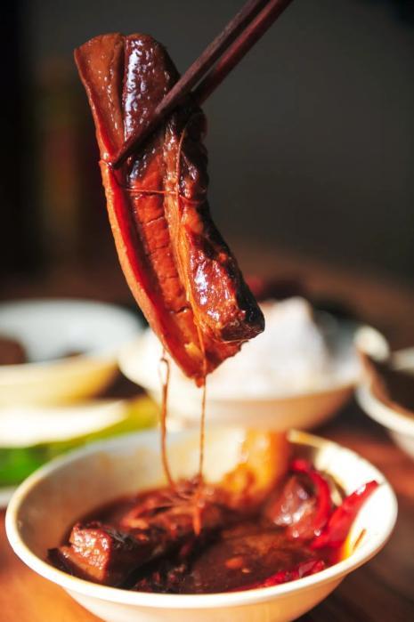 大火攻、文火炖,长时间的炖煮使把子肉透着浓郁的酱香,配上白米饭,便是老济南的经典味道。