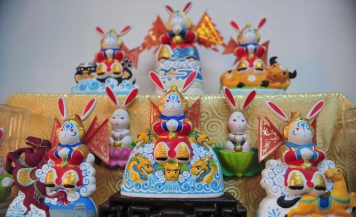 白面红唇、金甲锦袍,背插令旗手持药杵,源自玉兔投药济世的传说。造型古朴可爱,是祈求平安、带走泉城祝福的特色伴手礼。