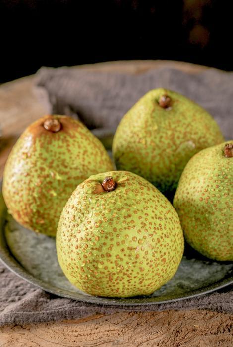 皮呈黄绿色,肉质无渣,汁水丰沛。清甜润肺,是冬季滋养身心的天然甘露。