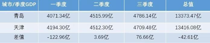 数据显示,2025年前三季度,长期稳居“北方第二城”的天津GDP为13416.08亿,同比增长4.7%;青岛以13373.47亿经济总量、5.4%增速紧追,将两城差距拉近至42.61亿。
