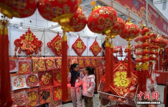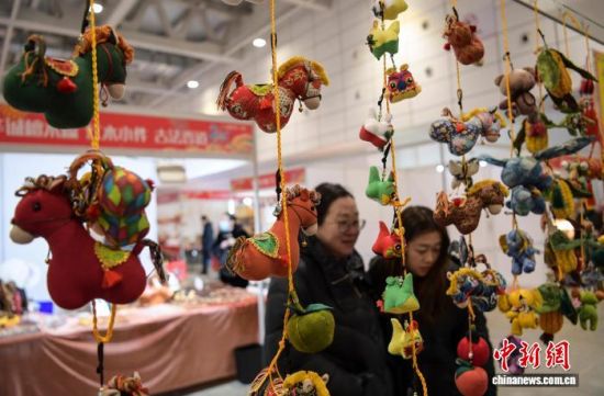 2月6日,山东济南,市民在年货会上选购挂件。中新社记者 张勇 摄