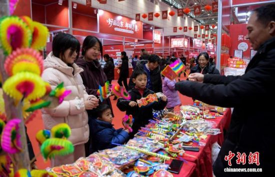 2月6日,山东济南,市民在年货会上选购商品。中新社记者 张勇 摄