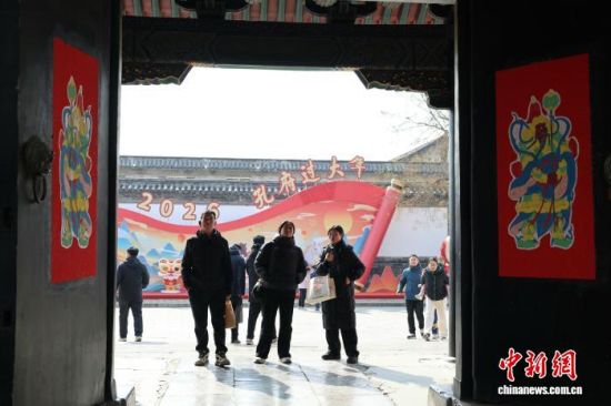 游客在讲解员的带领下参观孔府,了解“孔府过大年”的习俗。赵晓 摄