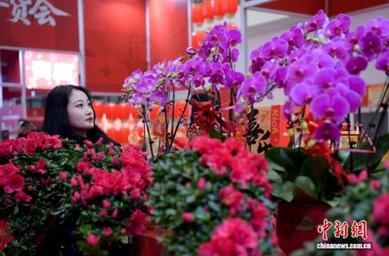 2月6日,山东济南,市民在年货会上选购年宵花。当日,2026山东新春年货会在山东国际会展中心开幕。 中新社记者 张勇 摄
