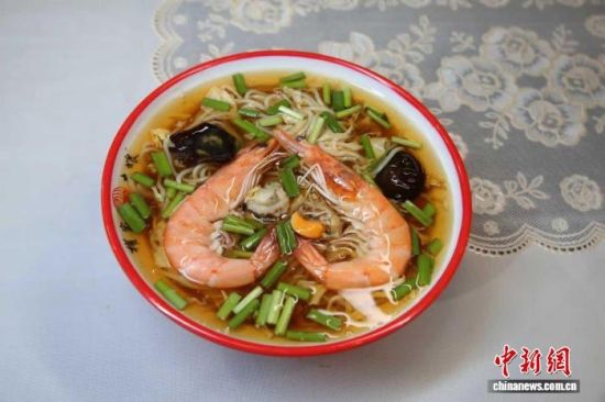面馆里,权福健的抻面技艺颇具特色。两斤重的面剂子经溜条、抻拉,可制成细如发丝的“一窝丝”,最细的龙须面能穿过针孔,这一“龙须穿针”的技艺,传承自老辈手艺。煮面时采用沸水一次煮熟,保留面条筋道;卤汁以爬虾、花蛤、干贝等海鲜熬制,透着渤海湾独有的风味。