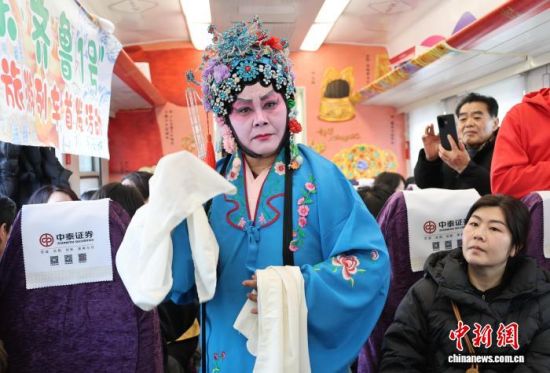 山东吕剧演员在列车上表演《小姑贤》。赵晓 摄