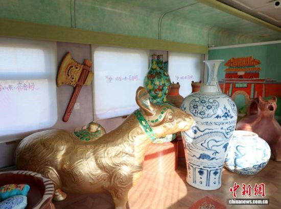鲁冀两省的“镇馆之宝”以模型的形式亮相列车内的“文物森林”体验区。李欣 摄