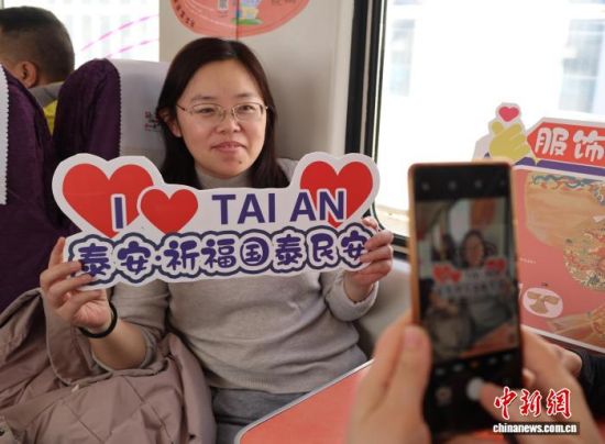 2月14日,在山东泰安,“好客山东·齐鲁1号”文物研学主题旅游列车鸣笛首发。该列车从泰山站始发,终至河北邯郸站,设有青铜、玉、陶、瓷、画像石、服饰、建筑7节主题车厢及2节综合娱乐车厢,打造“铁轨上的移动博物馆”。赵晓 摄
