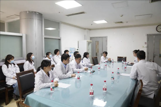 ▲罕见病患者老周即将出院,图为四名不同科室的医生联合进行查房