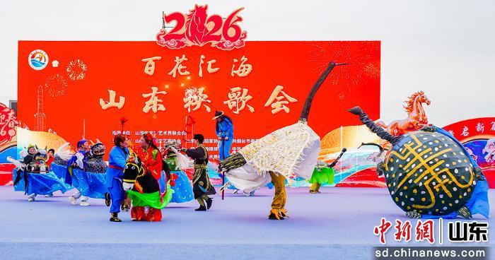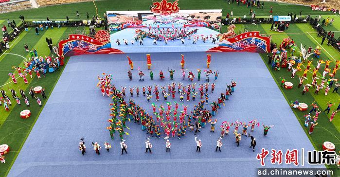 中新网山东新闻3月1日电(王娇妮 姜祥 徐盛世)3月1日,2026“百花汇海”山东秧歌会在海阳市河清岛体育场精彩上演。来自山东省内外的20支队伍、1000余名秧歌爱好者同台竞演。