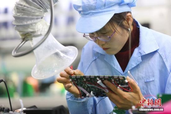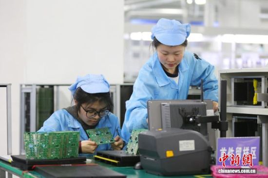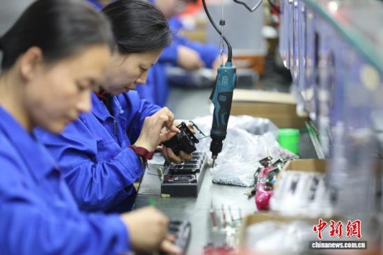 2月28日,位于山东省日照市东港区的山东比特智能科技股份有限公司生产车间,工人正在赶制酒店用电话机和插座出口订单。该公司是一家在智慧酒店、智慧家居、智慧地产等领域提供模组模块设计、研发、软件服务、制造、销售及专业解决方案的高新技术企业。图/CNSphoto 郑培波 摄