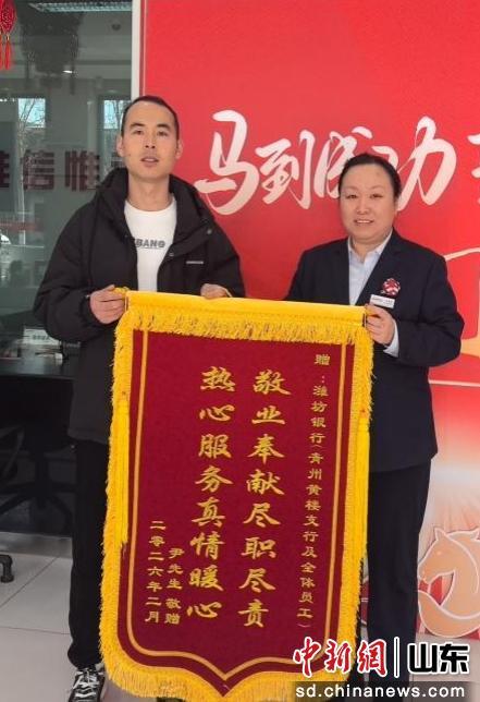 潍坊银行青州管辖行黄楼支行的员工用实际行动诠释雷锋精神。外地客户尹先生不慎遗落一万元现金,支行员工发现后主动联系并延时等待其从外地返回领取。客户尹先生深受感动,专程送来印有“敬业奉献尽职尽责 热情服务真情暖心”的锦旗致谢。这一暖心举动不仅展现了潍坊银行员工的职业操守,更传递了金融服务的温度与善意。