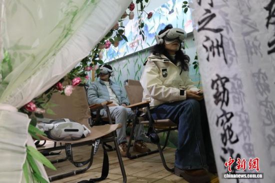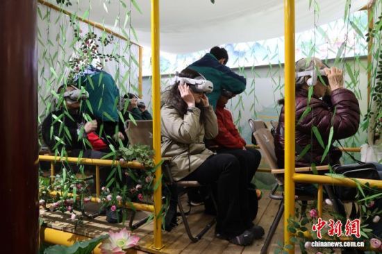 3月18日,山东济南,民众佩戴VR眼镜体验《趵突泉VR剧场·如梦令》。中新社记者 孙婷婷 摄